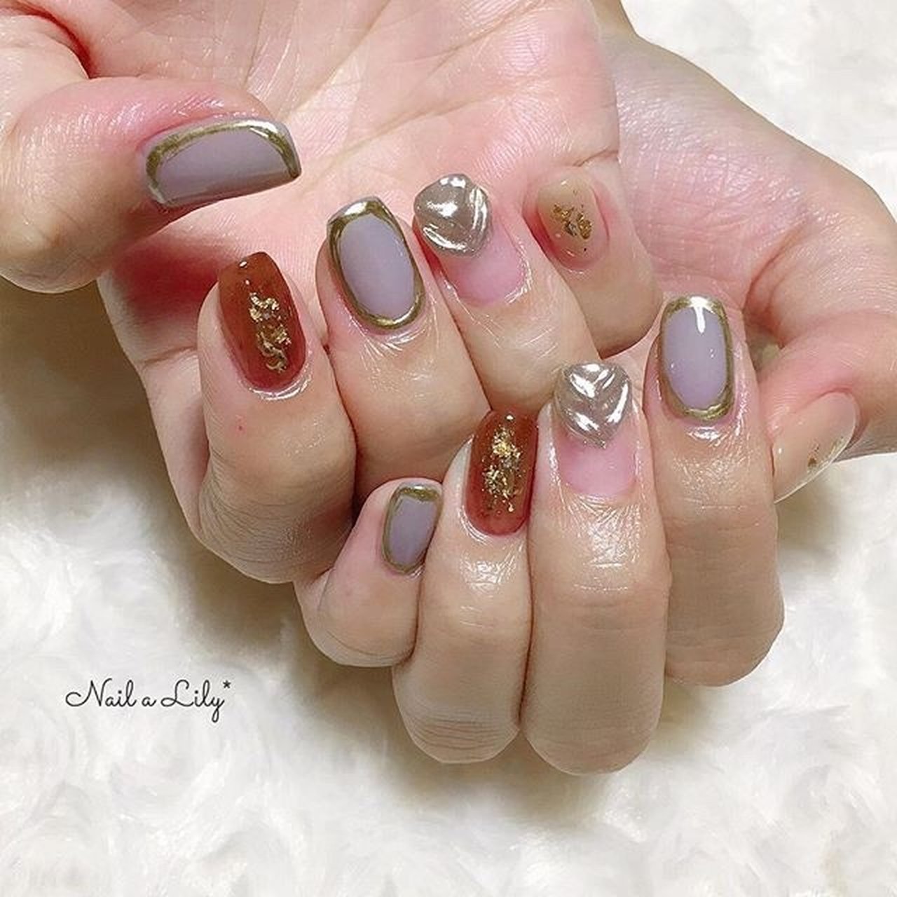 秋 冬 ニュアンス ミラー ブラウン Nailalily ネイルアリリー Akiのネイルデザイン No ネイルブック